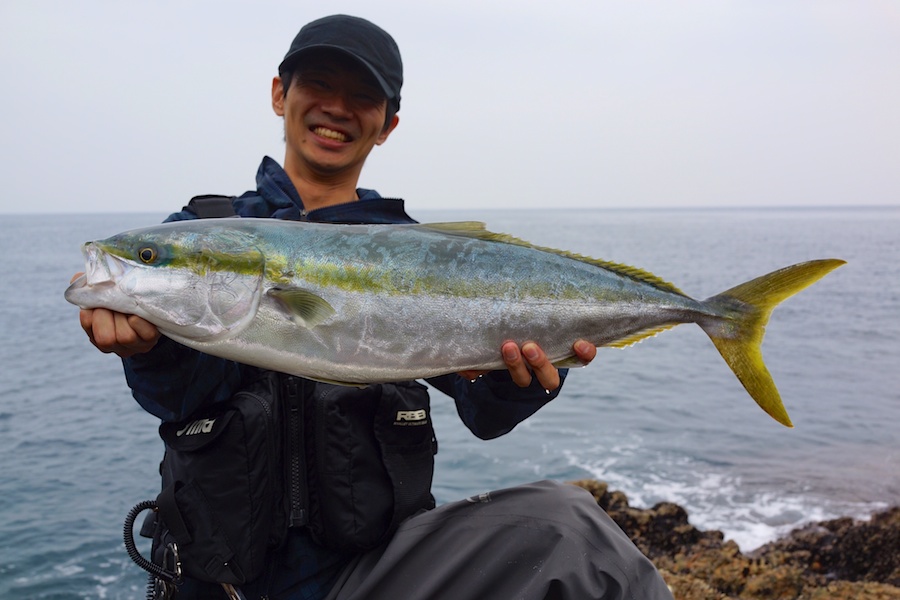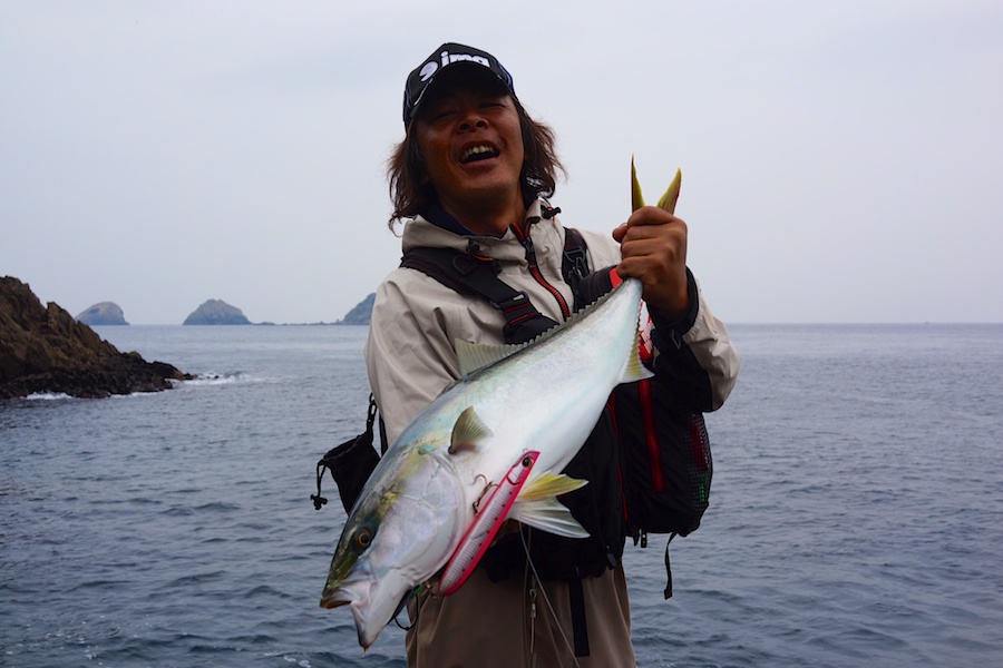 あまりに暇なのでイワテルの背後からキャストのコツなどをあーだこうだ指摘しとったんですが、ちょ、一回見といて!と、ロッドを借りてからの一投でw