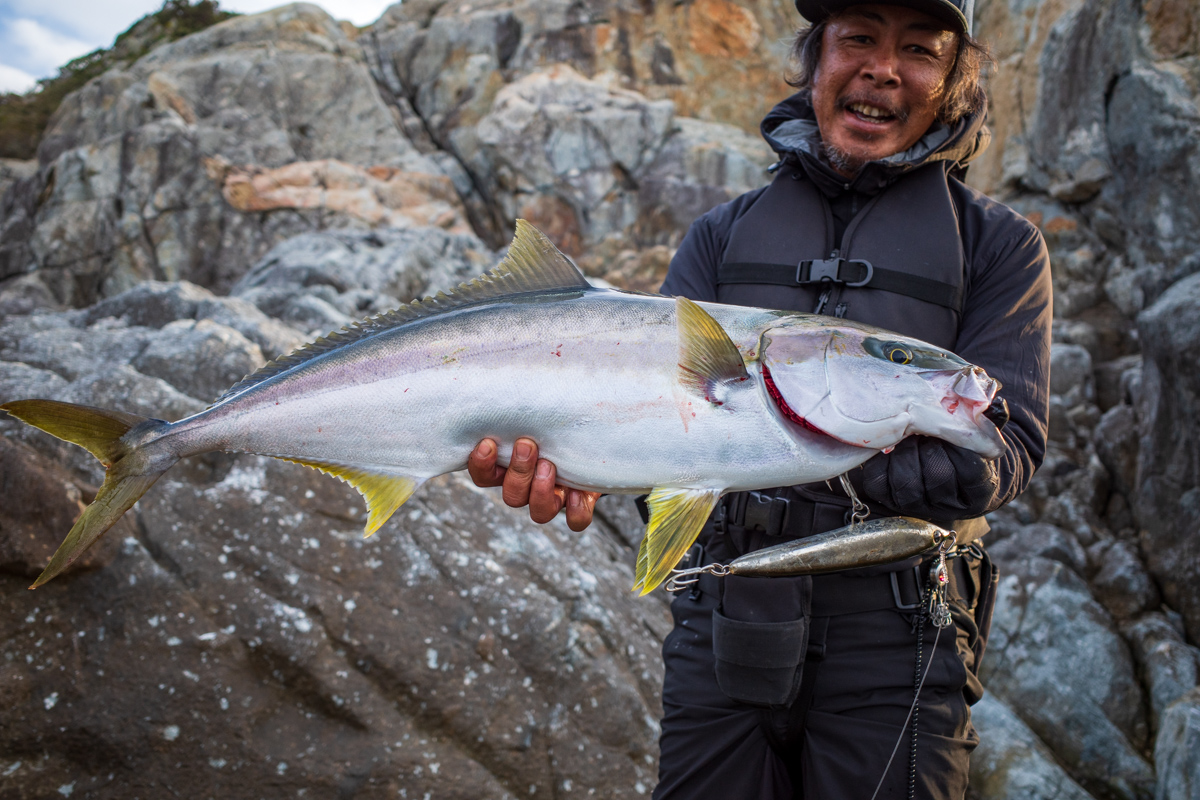 ふふっw いきなりロッドぶち曲がってるタコヤキw ブリがダボーフッキン‼️