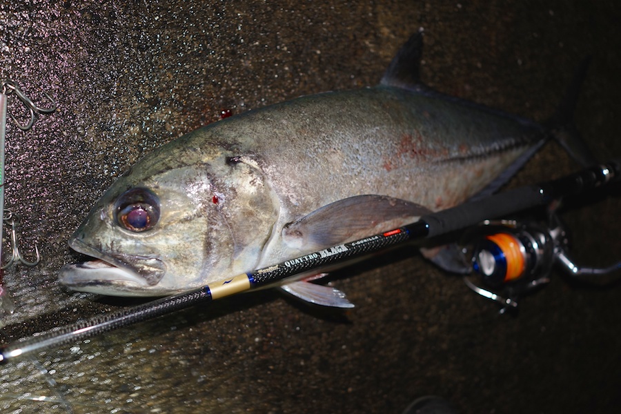 松本に何やらゴツゴツ当っているようだが、乗らん。。。期待しながら4〜5時間が過ぎた。潮がわりを迎え岡さんに待望のヒット。が、これもギンガメアジだった。。。どうやら今年は会えないようだ。